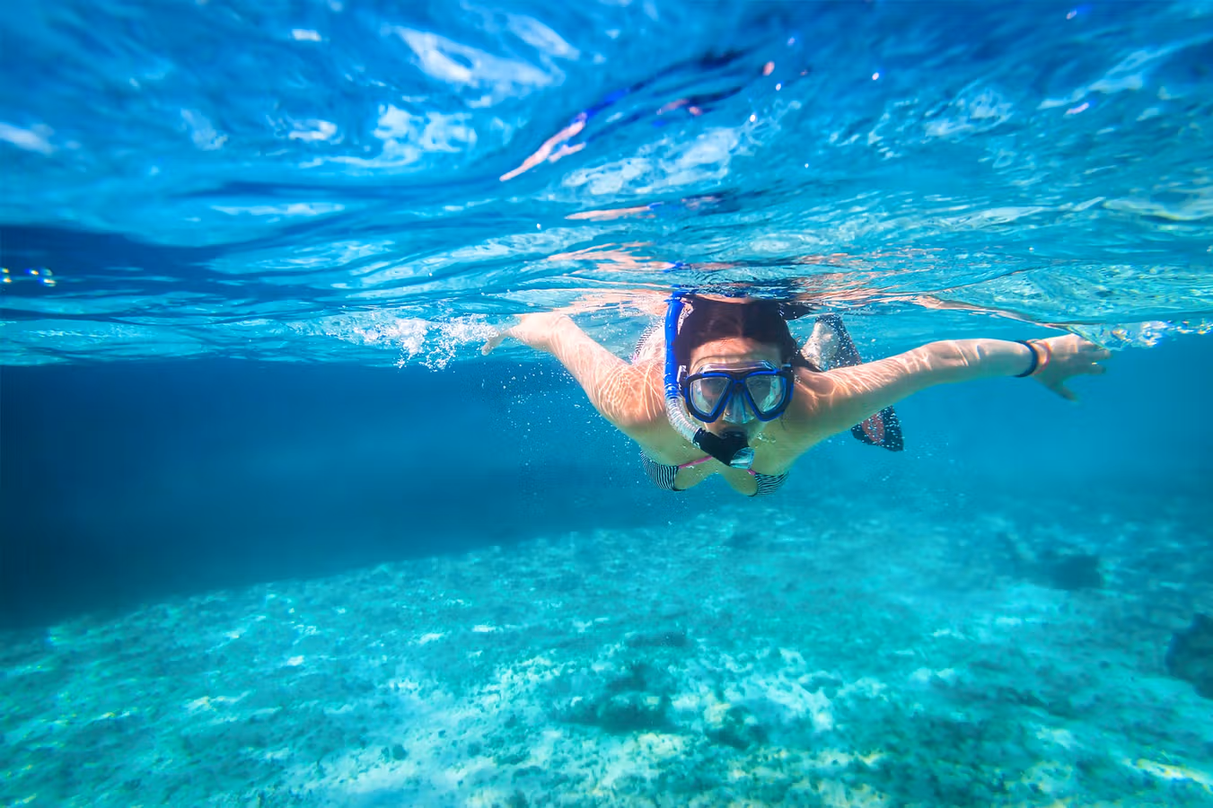 Clear blue water and soft sand