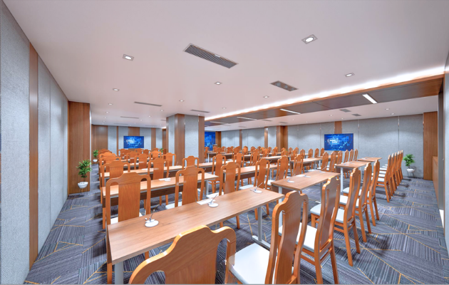 The conference room at Glamour Hotel is designed to accommodate meetings, seminars, and corporate events with a capacity of approximately 80 to 100 guests. The room is equipped with a built-in sound and lighting system, providing a professional and comfortable environment for presentations and discussions.